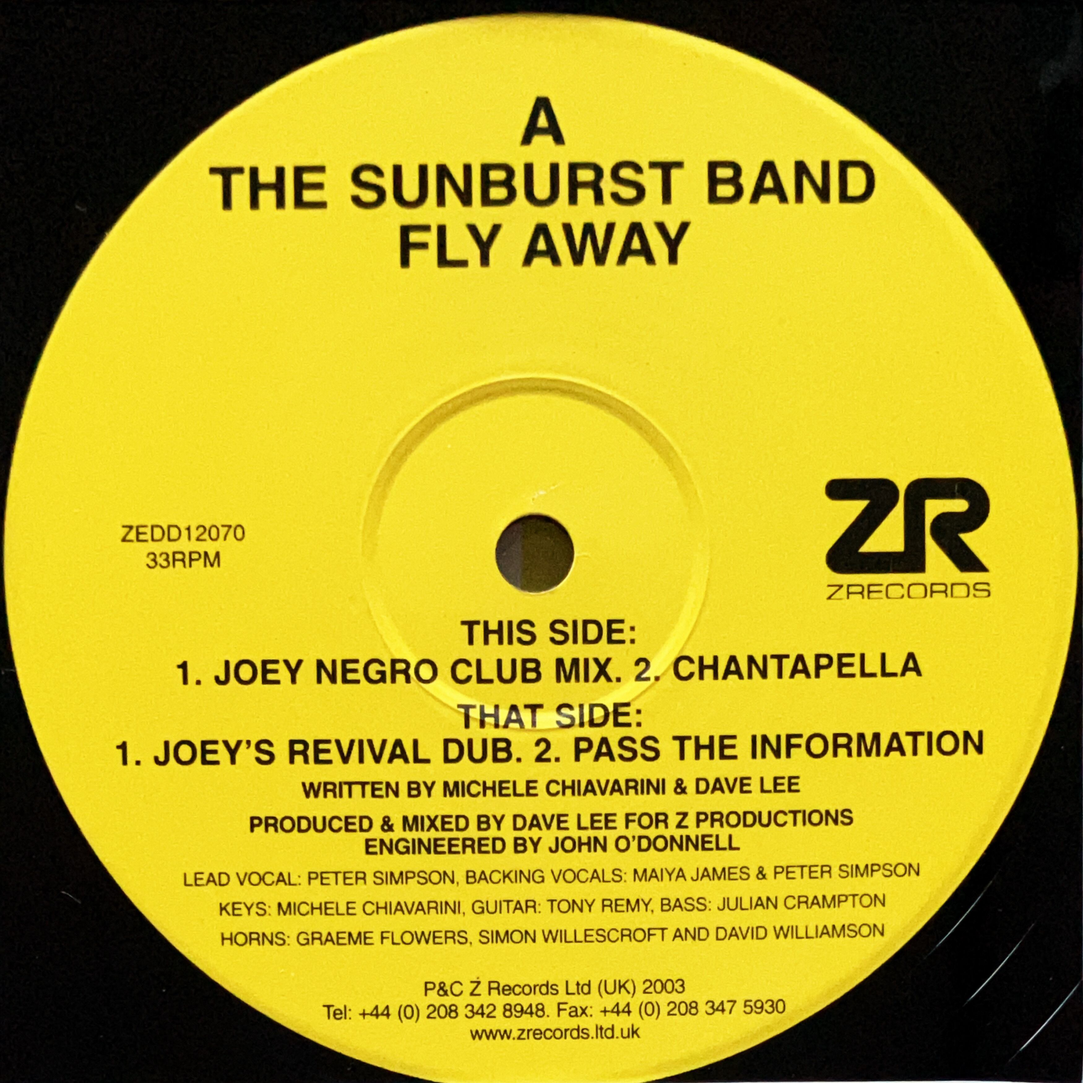 【12”】Joey Negro Presents The Sunburst Band / Fly Away (Z Records) (ZEDD12070)
