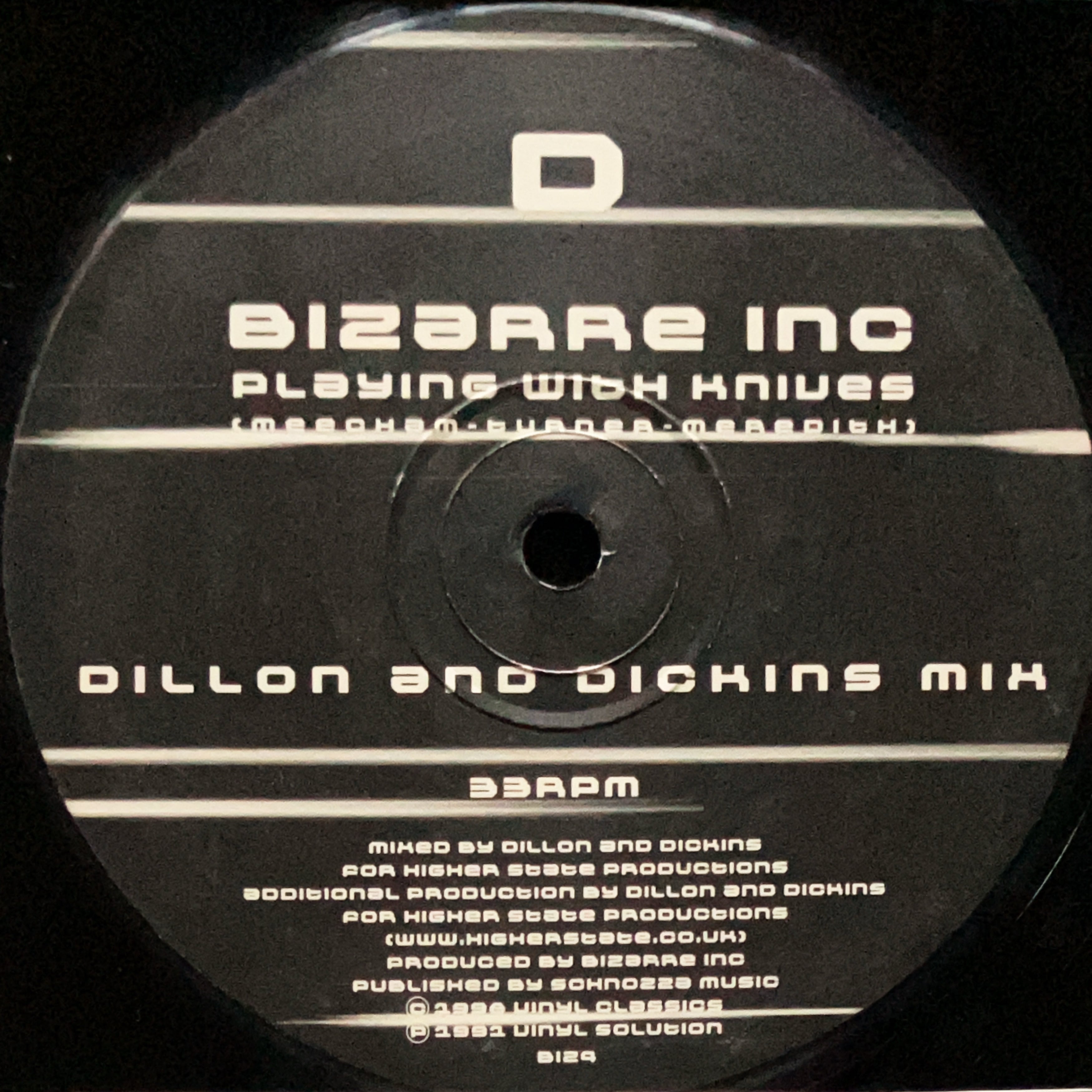 UKダンスチャートNo.1、UKナショナルチャートで4位までにもなったBizarre Incによる大ヒット、"Playing With Knives"の2枚組リミックスEPのDJプロモ。