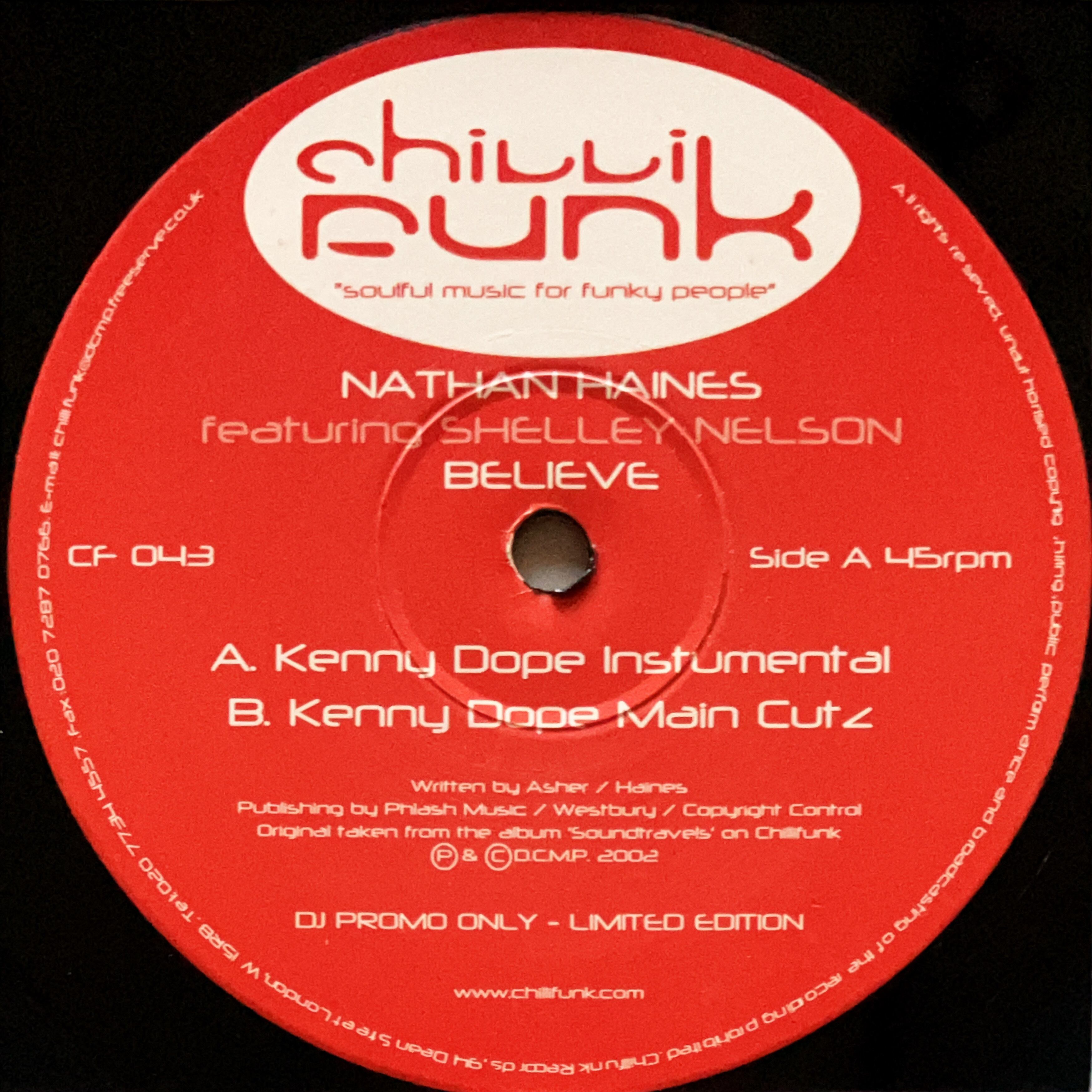 【12”/ Kenny Dope Remix】Nathan Haines Featuring Shelley Nelson / Believe (Chillifunk Records) (CF 043)
