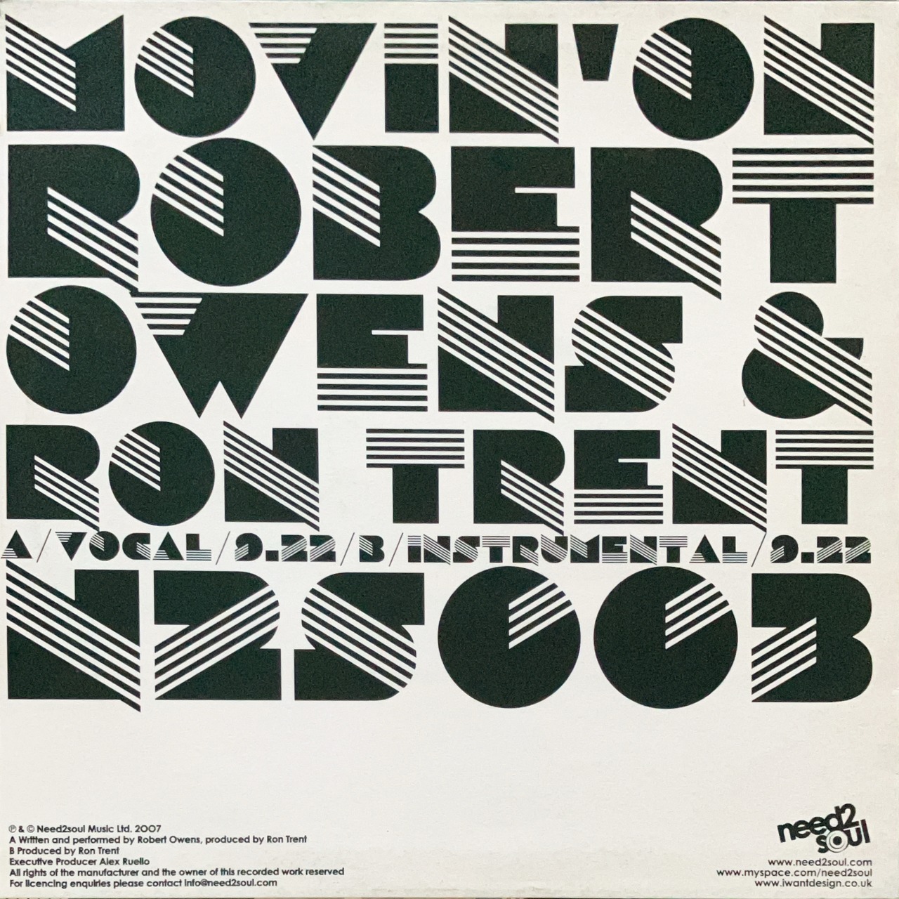 【12”】Robert Owens & Ron Trent / Movin' On (Need 2 Soul) (N2S003)