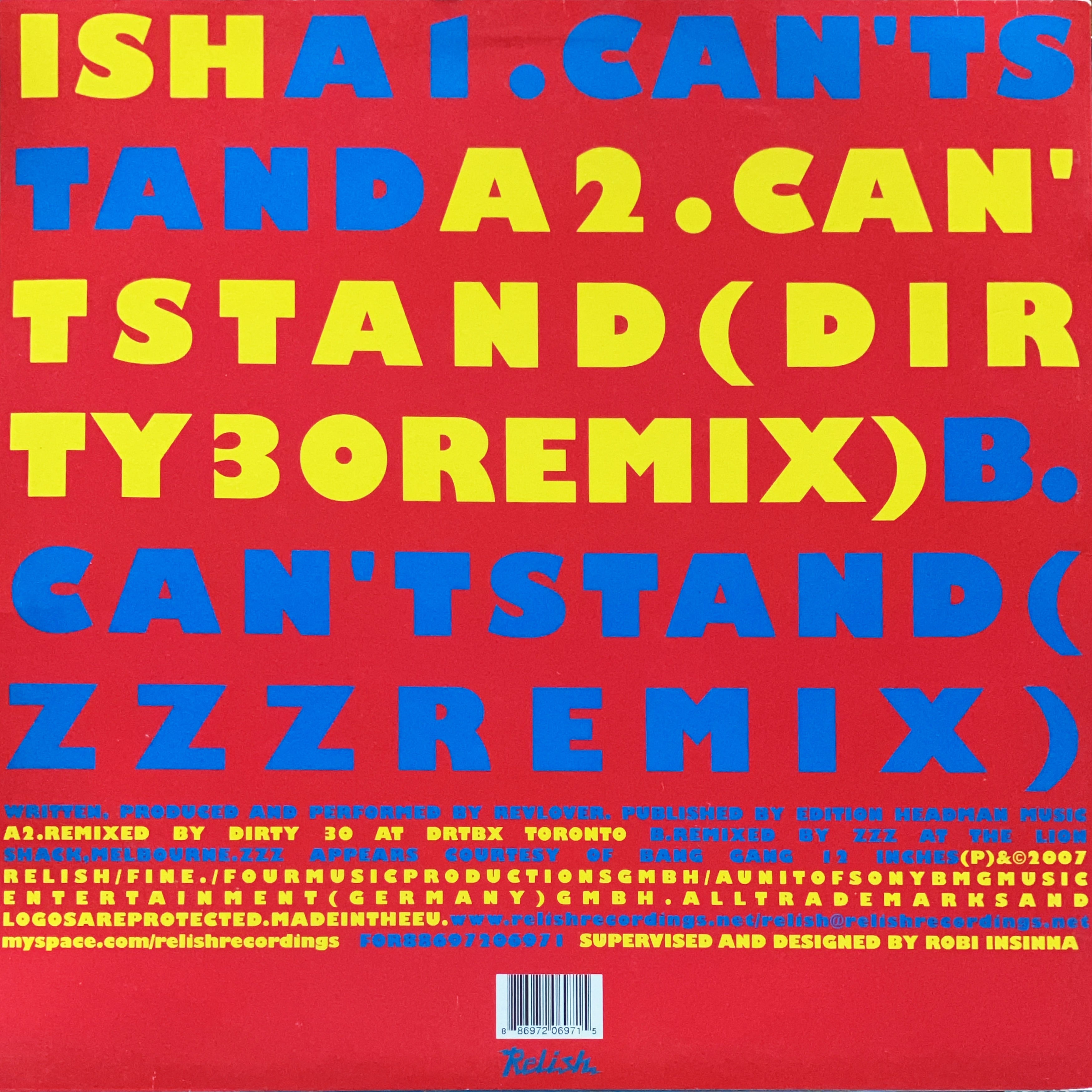 【12”】Revlover / Can't Stand (Relish Records) (RR 032)