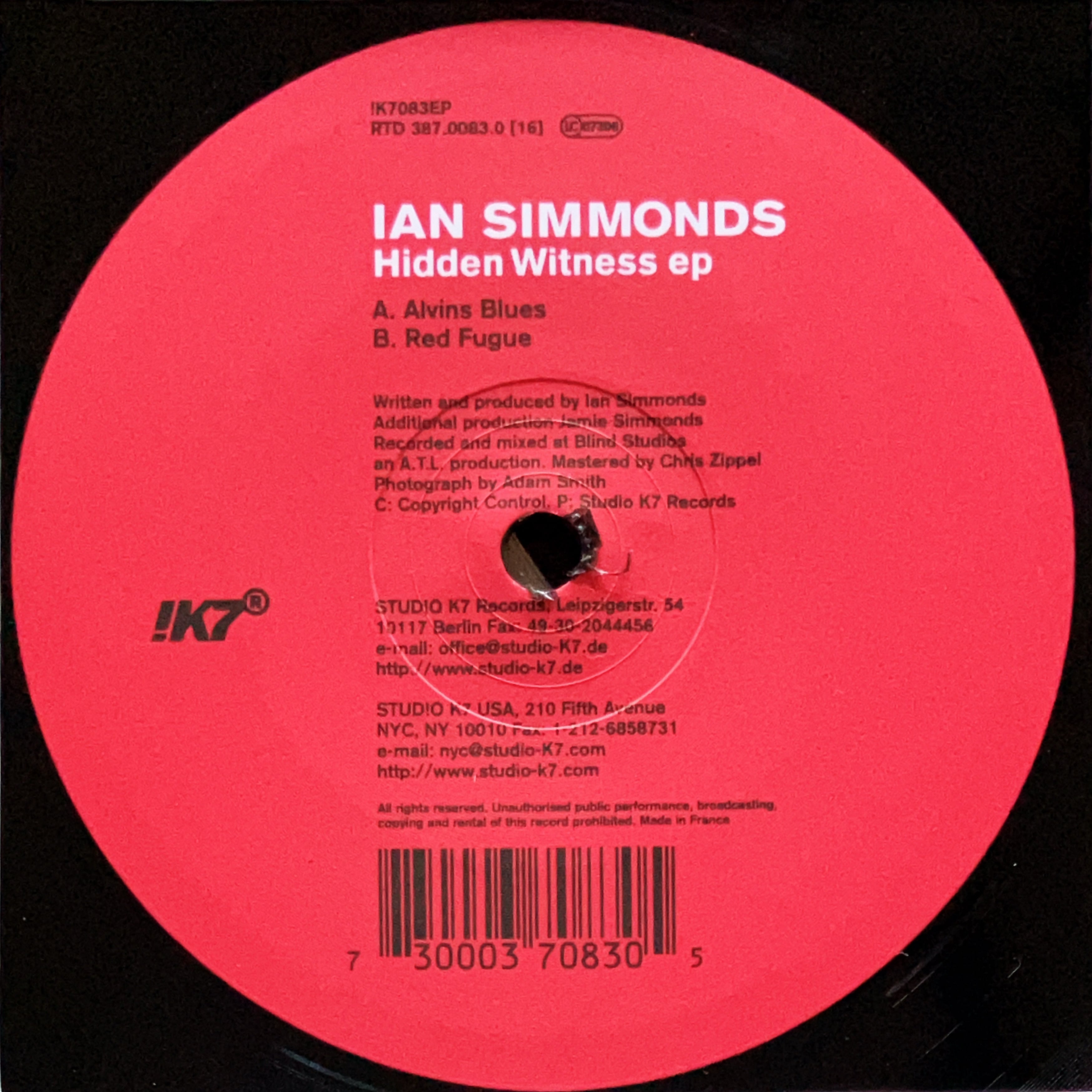 【12”】Ian Simmonds / Hidden Witness EP (!K7 Records) (!K7083EP)