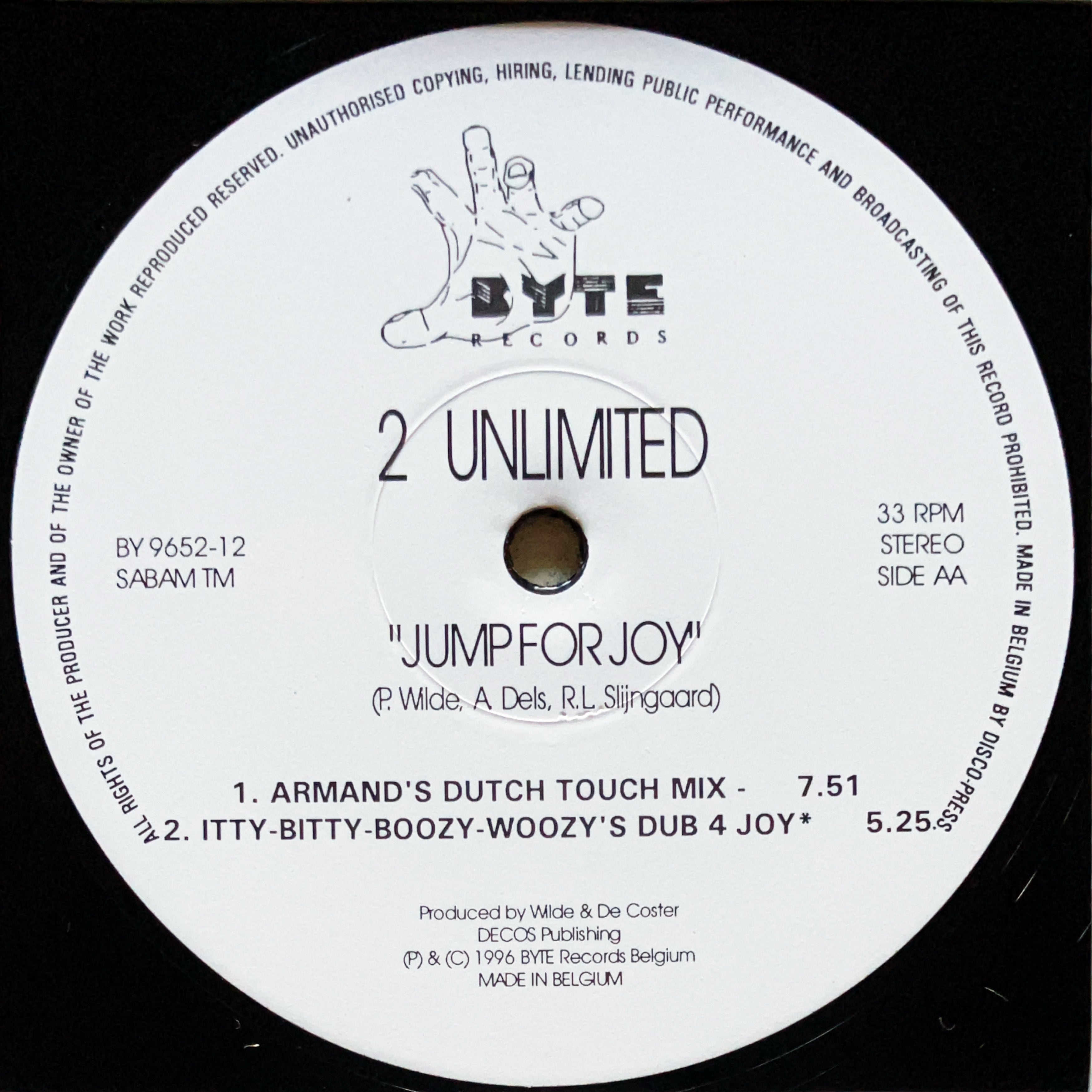 【12”/ Armand Van Helden Remix】2 Unlimited / Jump For Joy (Byte Records) (BYTE 9652-12)