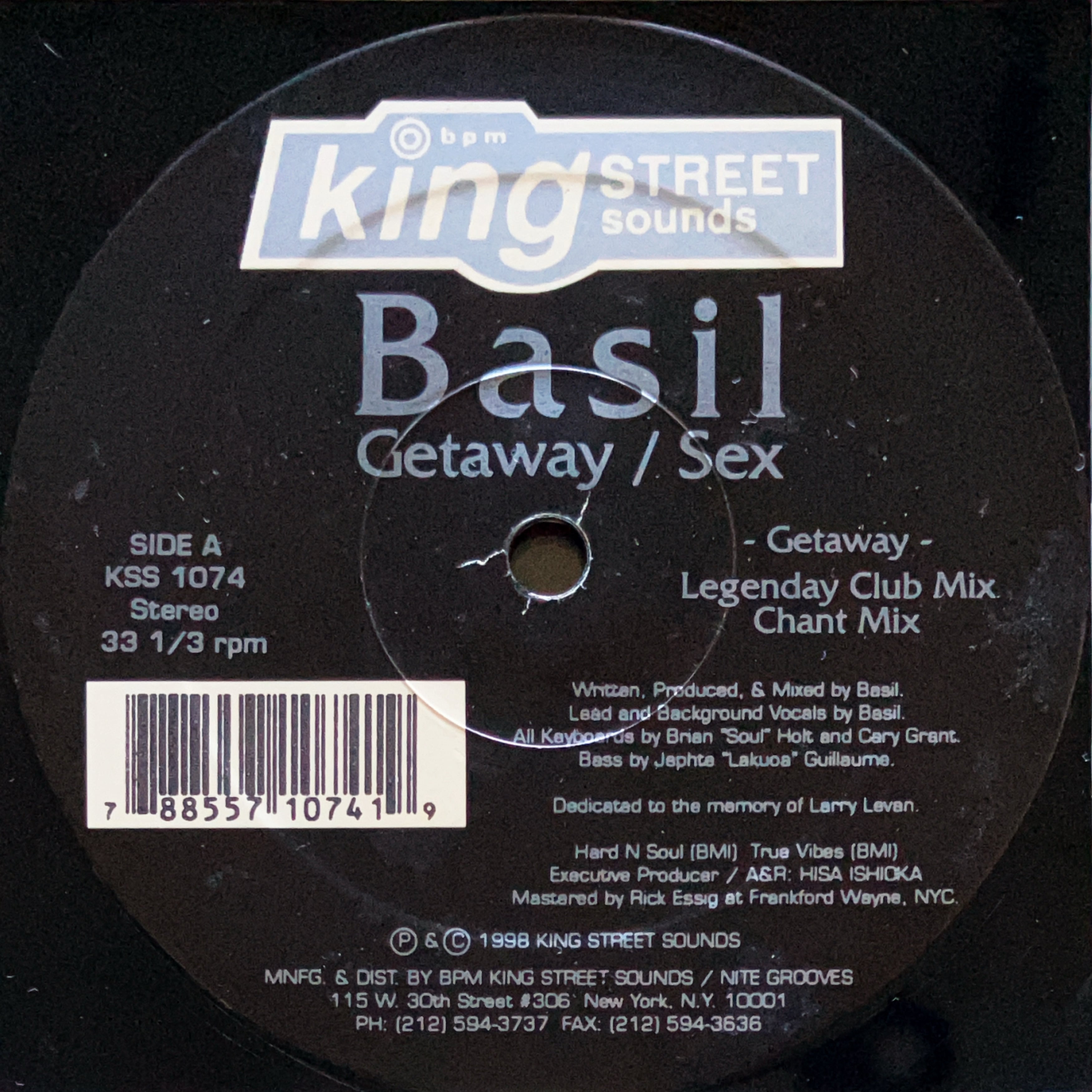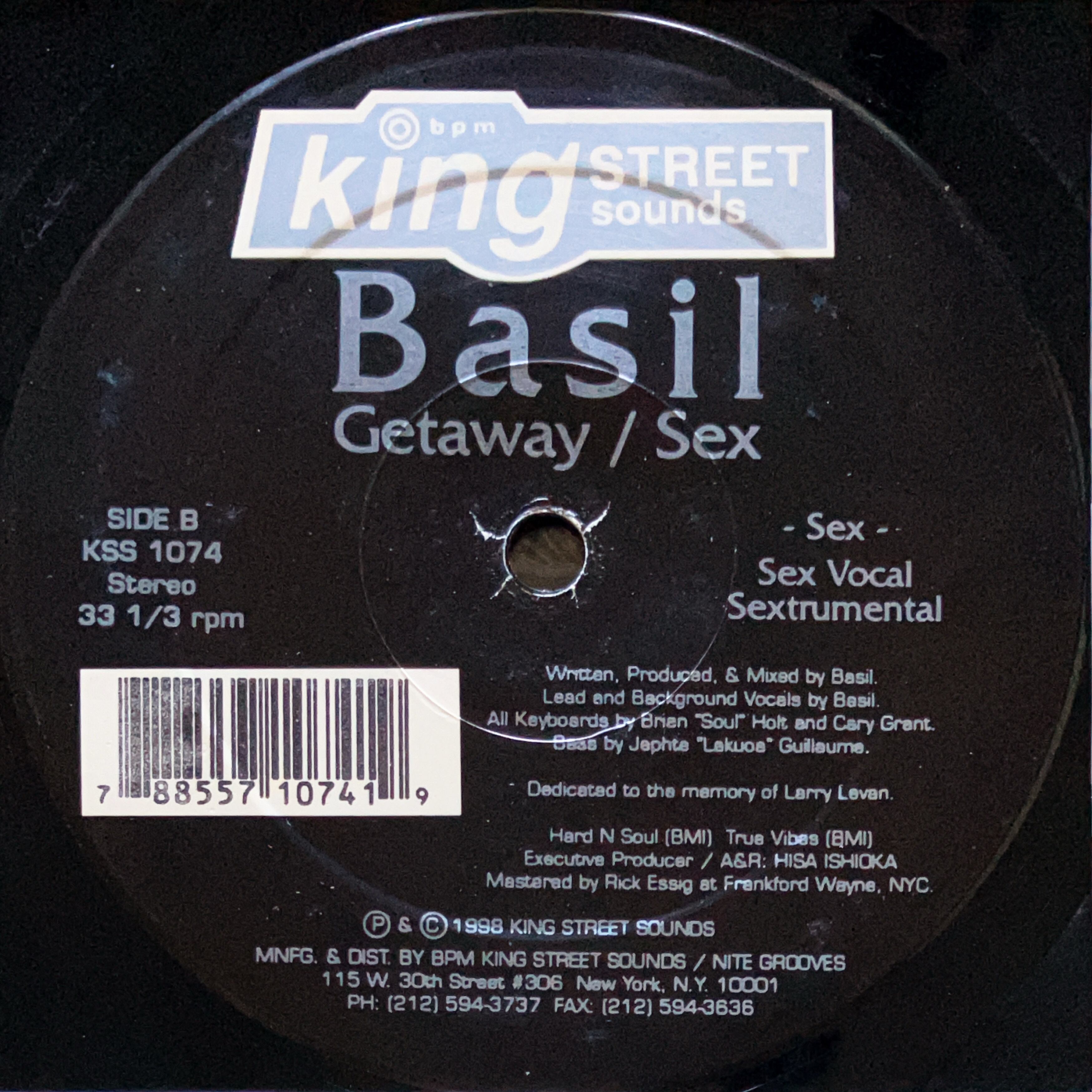 【12”】Basil / Getaway / Sex (BPM King Street Sounds) (KSS 1074)