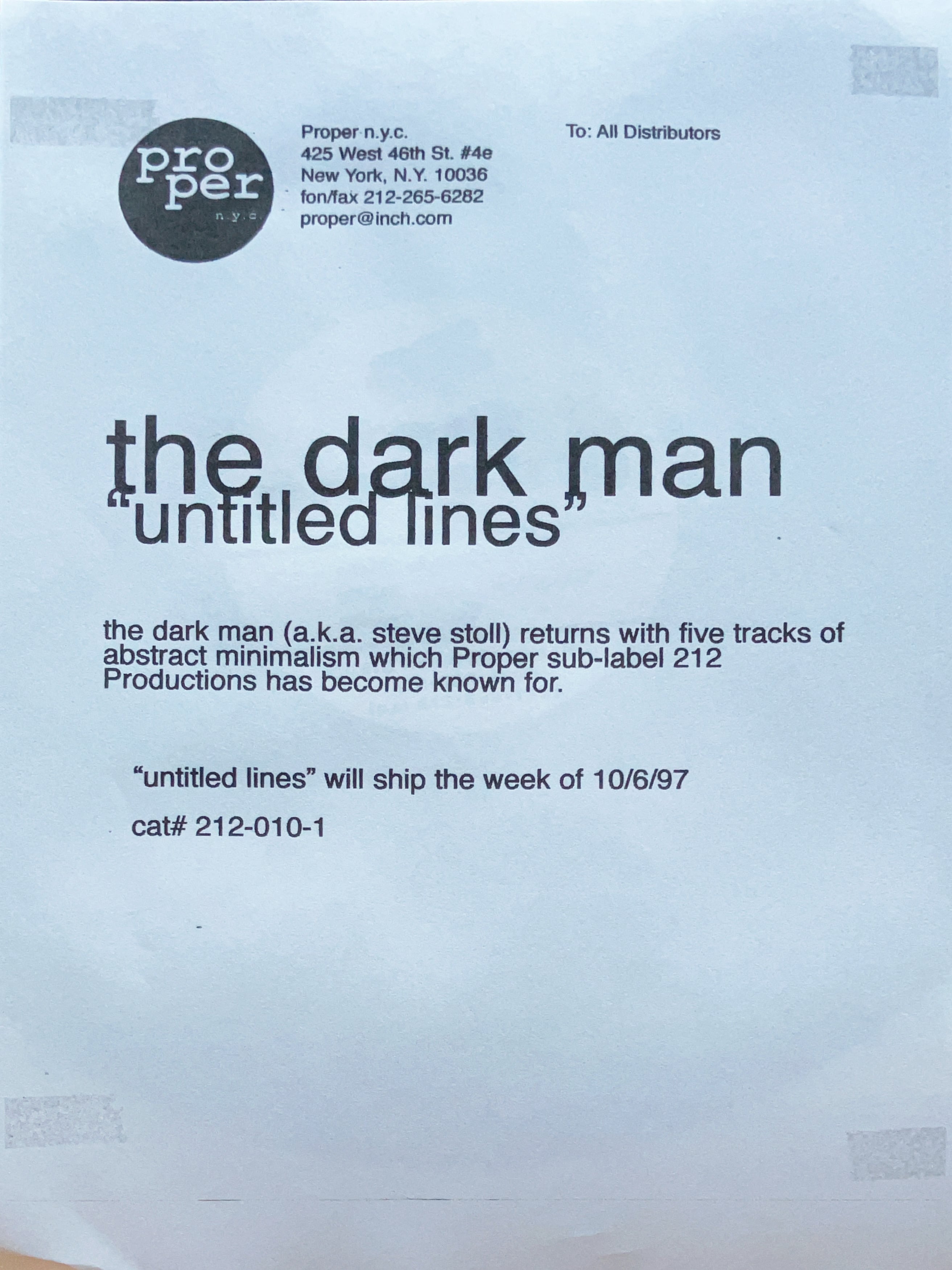 Steve Stollが、The Dark Man名義で、自身のProperのサブレーベル212 ProductionsからリリースしたEPのプロモ。