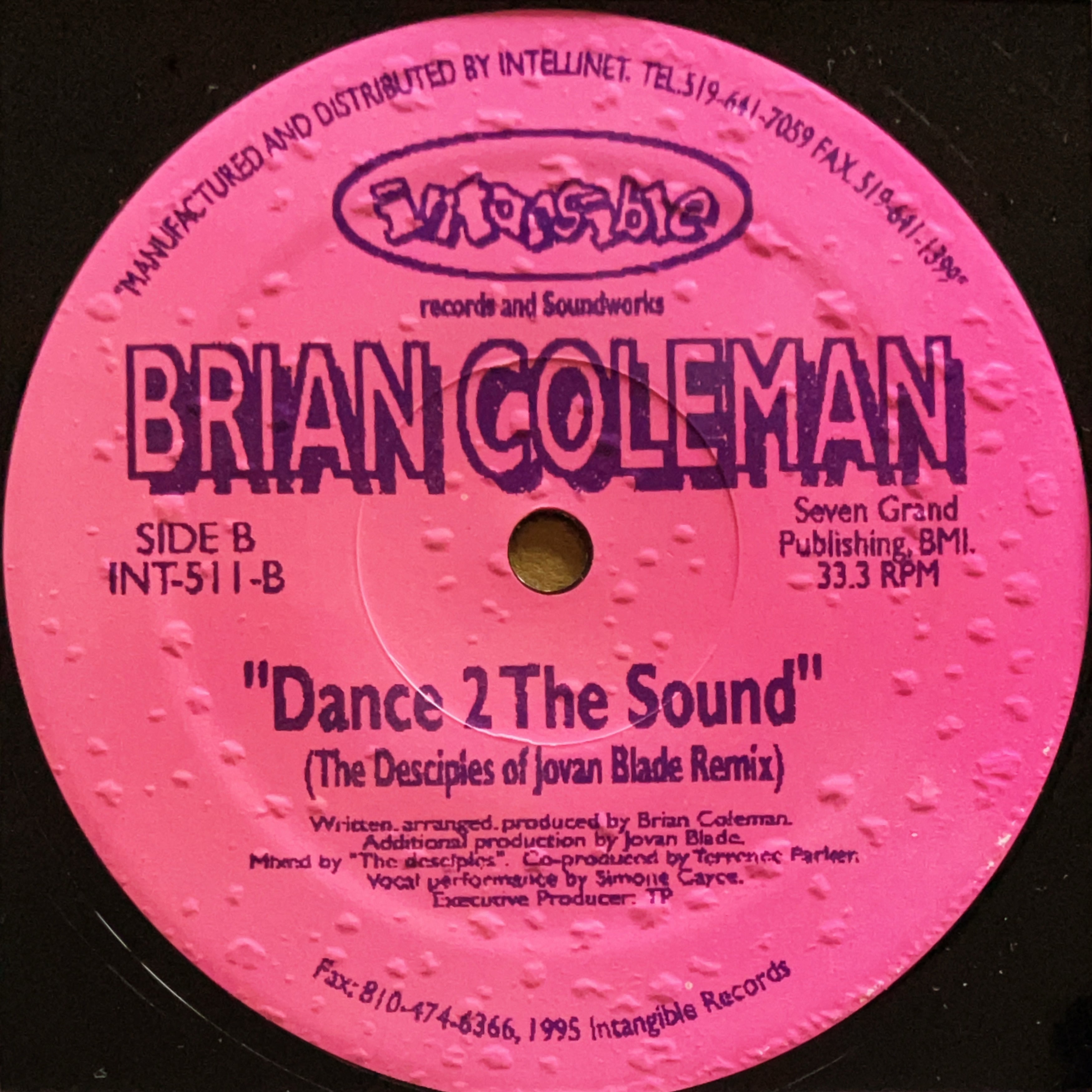 【12”/ Terrence Parker Remix】Brian Coleman / Dance 2 The Sound (Intangible Records & Soundworks) (INT-511)