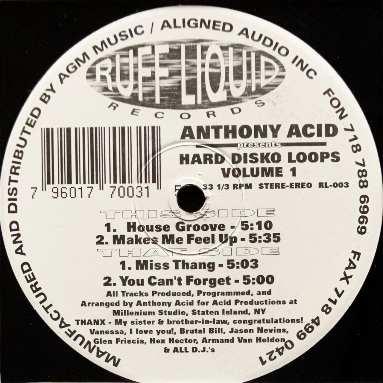 【12”】Anthony Acid / Hard Disko Loops Volume 1 (Ruff Liquid Records) (RL-003)