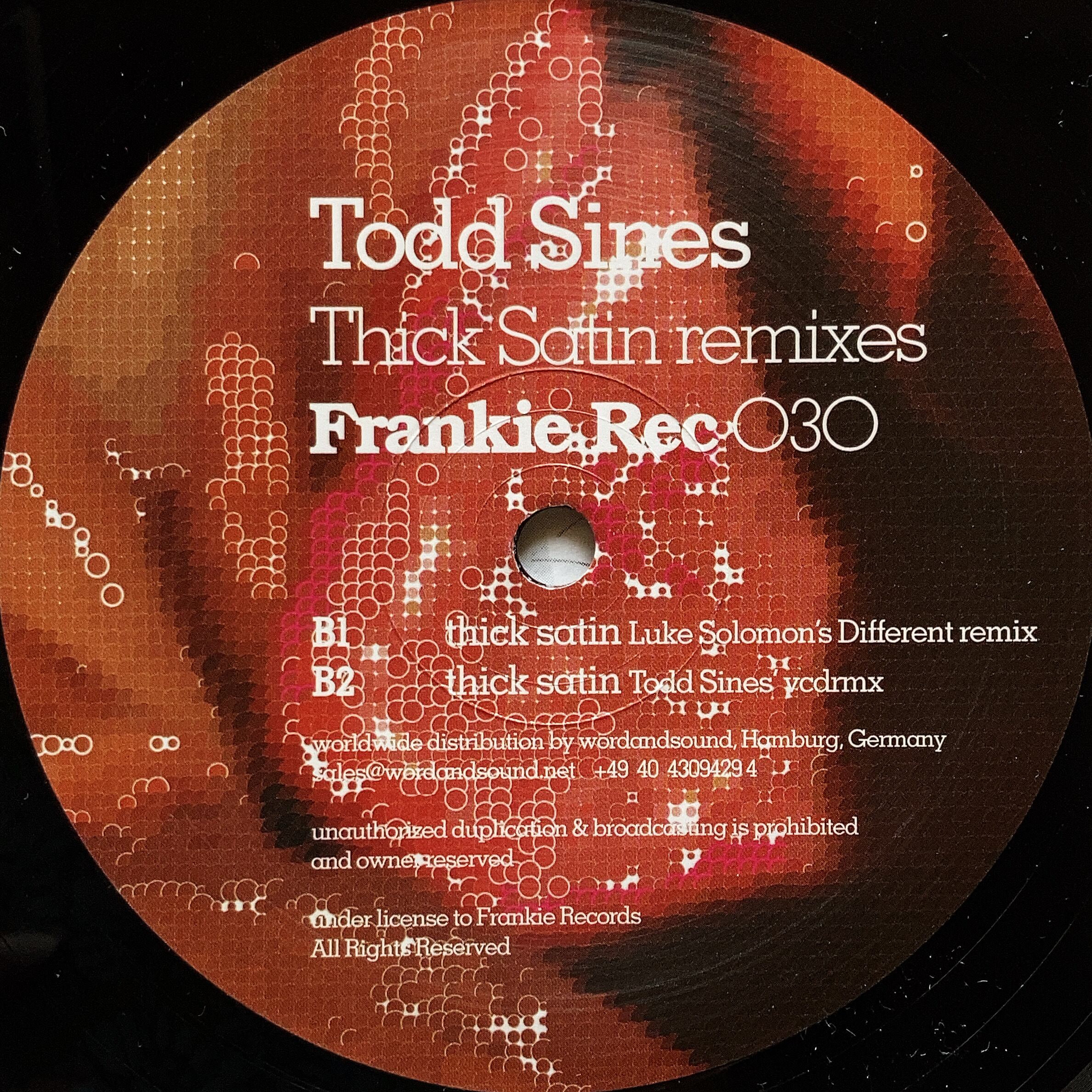 【12"】Todd Sines / Thick Satin (Remixes) (Frankie Rec) (FRANKIEREC030)