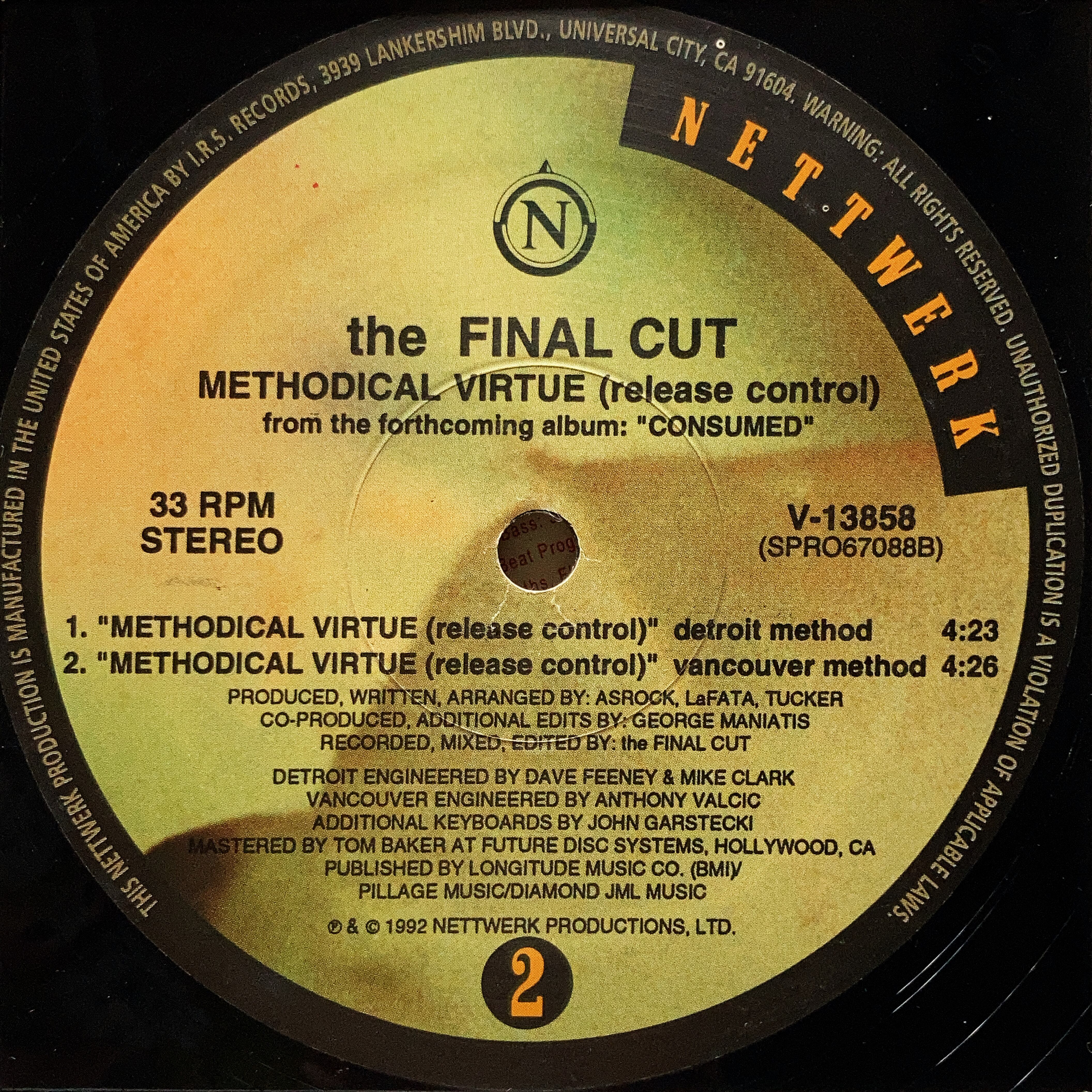 【12”】The Final Cut / Methodical Virtue (Release Control) (Nettwerk) (V-13858)