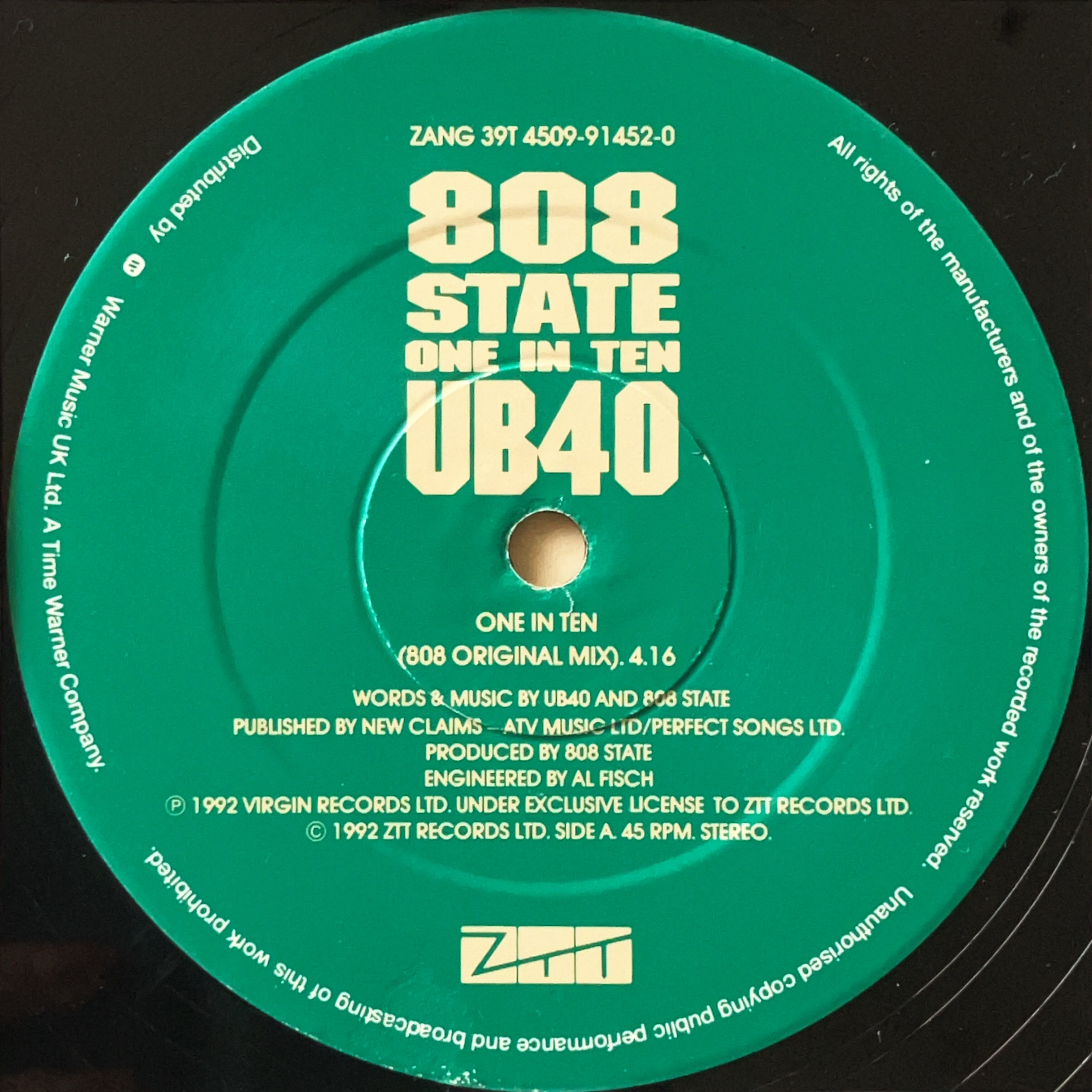 【12"】808 State, UB40 / One In Ten (ZTT) (ZANG 39T)